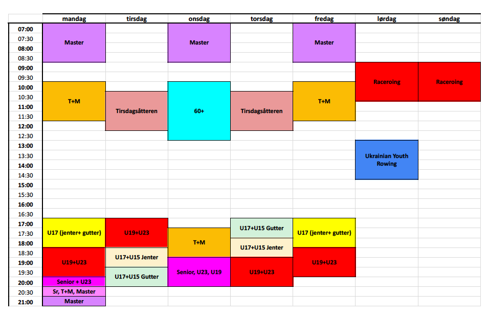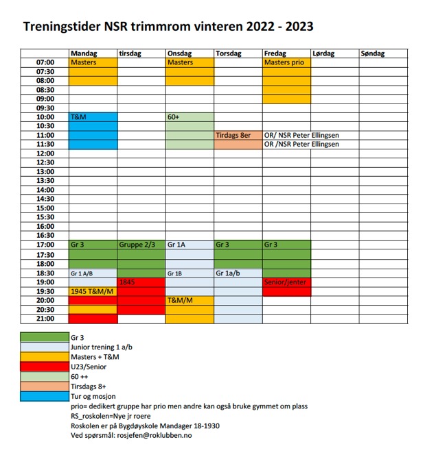 Treningstider i treningsrommet vinteren 2025/26